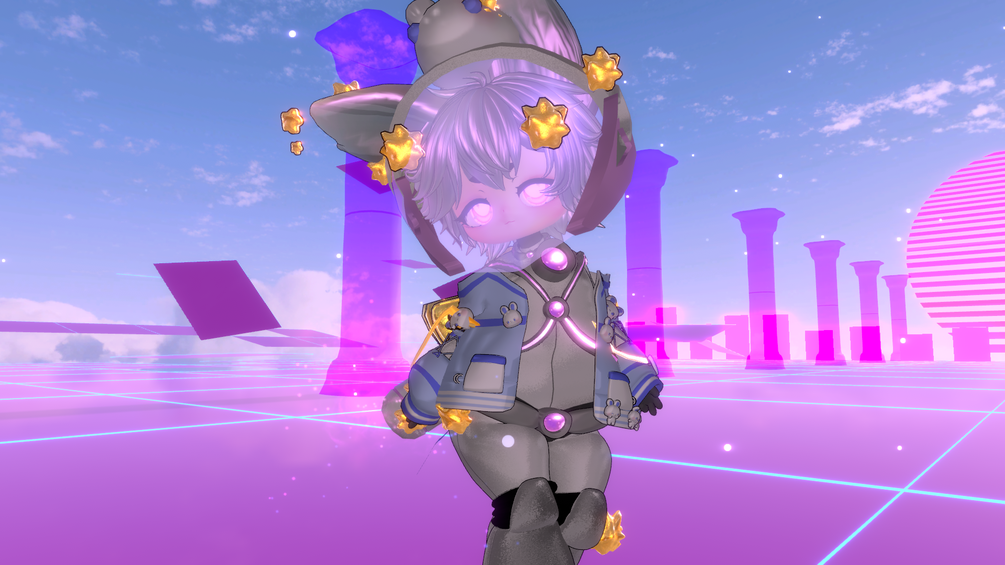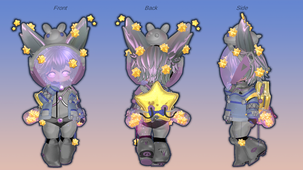 Shuttle is a Stardust Collector his kind the Stardust bunny's work in space to control and regulate the output of new stars forming by sucking up space dust and stardust into their stardust vacuums. Shuttle himself is actually notoriously bad at cleaning his vacuum when it gets filled and as a result almost always manages to get it all over his uniform this is defiantly NOT because he customized his vacuum to fit into a star backpack 100% defiantly not (sarcasm here). Shuttle himself is a lover of all things pastel and cute which makes him the odd one out from his peers. Opting to wear colorful pastels over the blander uniform. Shuttle is sometimes teased for his choices being too "girly" but stay steadfast in his beliefs that cute things are for everyone and shouldn't be gatekept.